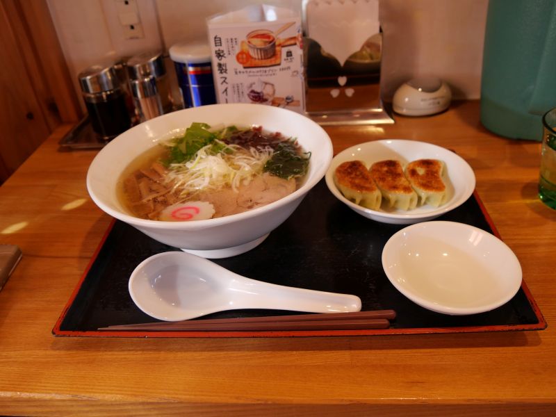 メニューには、洋食やパンケーキ、スイーツもあります。塩ラーメン、ぎょうざ、デザートと美味しくいただきました。高速道安曇野インターから近い立地です。