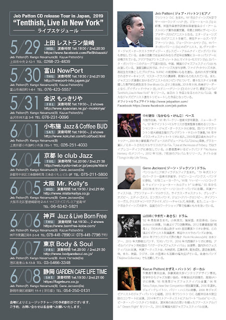 ジェブ・パットンの奥様のKazueさんは、5曲歌いましたが、意外によくて驚きました。アルトヴォイスで、丁寧に歌っていて、ちょっと峰純子を想いだしました。今回のツァーは、ジェブの奥様の一恵さんの郷里である上田からのスタートであり、会場にはご両親や知り合いの方がお見えになり、アットホームな雰囲気も漂っていました。